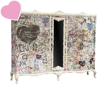 “Verona” and “Romeo and Julieta” are two beautiful collections, which are also hand-painted. Anna is inspired for it after visiting the house of Juliet in Verona. She has collected graffiti form all over the world, which are peculiar declaration of love and has put them on this beautiful furniture.