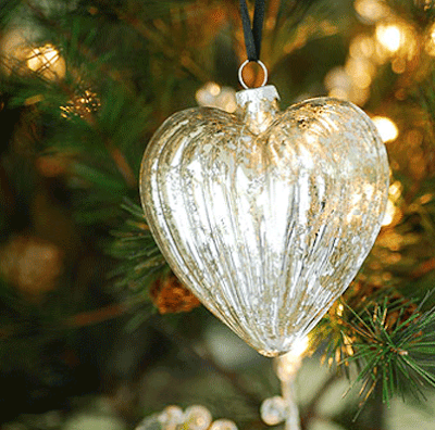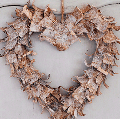 Loving the polka dot heart ornaments! Also really like the bark wreath!