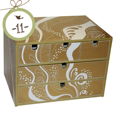 7. Боядисваме ръбовете на чекмеджетата със златна боя.