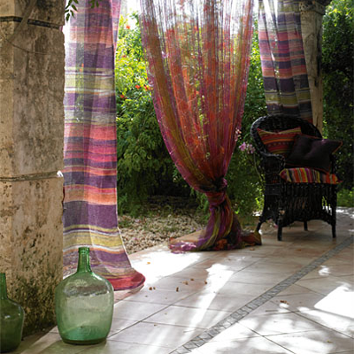 I go for the Latin America collection. These colors are beautifull. Certainly the pillows and then oooh the drapes hanging on the patio… GORGEOUS