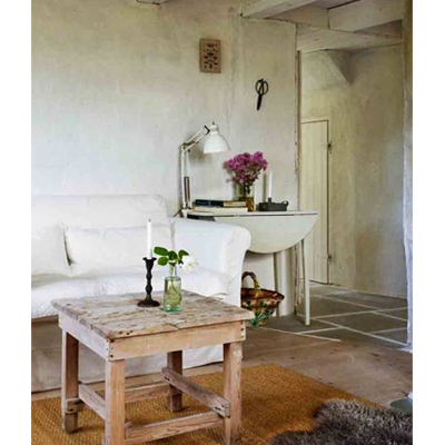 Charming! I love the natural grass rug with the white walls and sofa. Refreshing and cozy all at the same time.