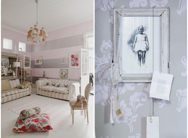 Тази впечатляваща къща принадлежи на артистична двойка и това определено може да се долови навсякъде. Решена изцяло в бяло, розово и сиво тя е чудесно декорирана и изпипана. Пълна е с множество интересни малки съкровища. Лично аз обожавам декорирането с писмата – много романтична и свежа идея.