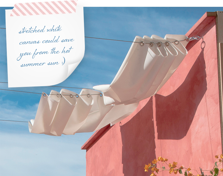 This is super cute =) But also you're very right with saying "white canvas COULD save you from the hot summer sun". I live in the Southeast of Spain, and sometimes white isn't enough… Above all, when those spaces need to be used even in the hardest hours (on boats, for example). Then, we use dark blue instead, creating a very mediterranean (and fresher, and lovely too) atmosphere… (After all, that's where we are, at the Mediterranean sea ;) )