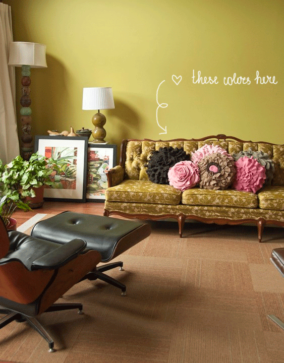 Quite by accident I found in ETSY this lovely shop and as usually I am in a hurry to share its treasures with you. I adore the idea to have a bright “rainbow” in your living room made of… ruffle rose pillows.