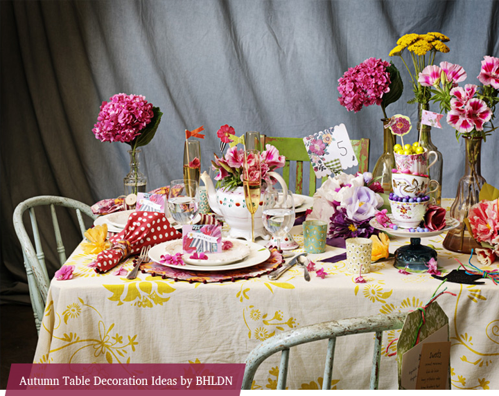 Very beautiful autumn decoration ideas are offered by BHLDN. Mostly they are aimed at big, sumptuous ceremonies but nevertheless the ideas are fresh, joyful and very colorful and could be applied even on an everyday occasions.