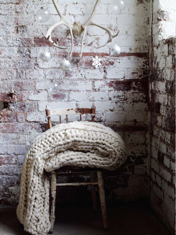 Обожаю такие кирпичные стены. А еще очень понравился плед в крупную вязку!
