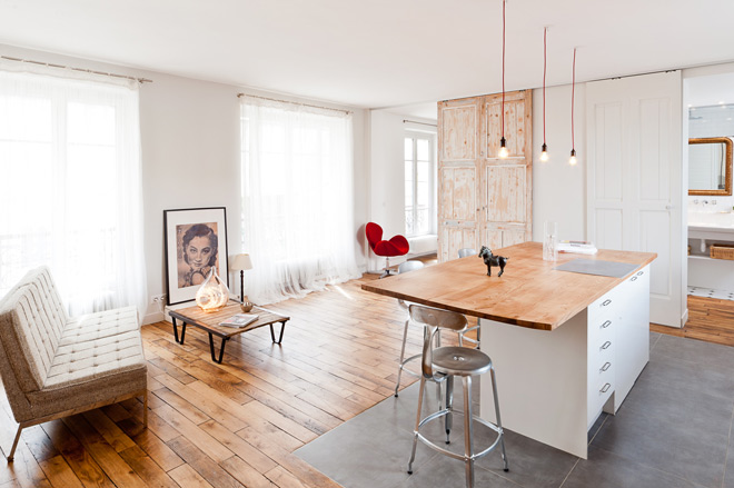 Искате ли да видите едно малко пространство, решено отново по великолепен начин? Попаднах на този светъл и много женствен апартамент чрез Пинтерест и мисля, че трябва да ви го покажа и на вас. Изключително добре решено отворено пространство в Париж от талантливата стилистка Marion Alberge и декоратора Muriel Cibot. Много ми харесва как всичко е решено семпло и изчистено и е така впечатляващо.