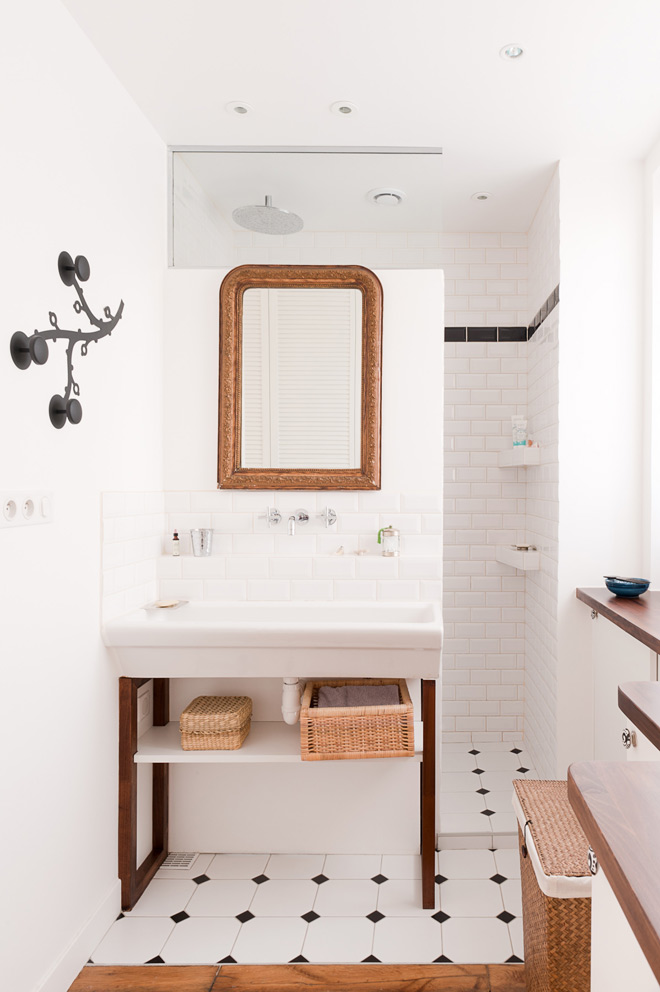 Do you want to see an amazing small place created in a stunning way? I came across this light and very feminine apartment via Pinterest and I think that I must share it with you. It is very well decided open space in Paris by the talented stylist Marion Alberge. and architect and decorator Muriel Cibot. I love how everything here was kept simple and it is so pretty like that.