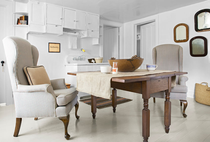 Love the first picture with the table and armchairs – looks so nice togehter with the white!