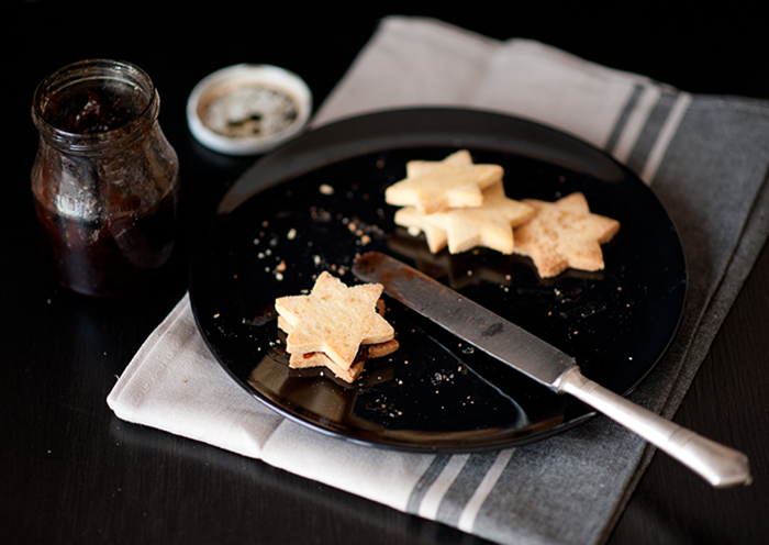 Тази събота и в моя дом мирише на вкусни коледни сладки. Аз много харесвам чешката празнична традиция, според която преди Коледа се пекат много и най-различни видове сладкиши, които после се разменят между съседи и приятели. И тази година съм решила да си направя сладкишовски маратон. Ще пека, декорирам и опитвам всякакви видове дребни сладки. И след като миналата седмица маратона започна със зимните сладки, сега е ред на едни звездички, които естествено се приготвят много лесно и в същото време са супер вкусни и симпатични.