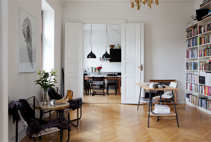 this simple and pretty home office caught my eyes this morning. it is perfectly decorated for the autumn, simple and with plenty of light which I envy a bit.