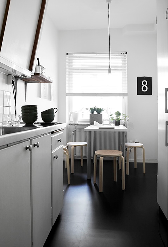 some more inspiration for those of us who have to deal with the lack of space. this tiny apartment in stockholm could inspire you. i really love the cute kitchen there.