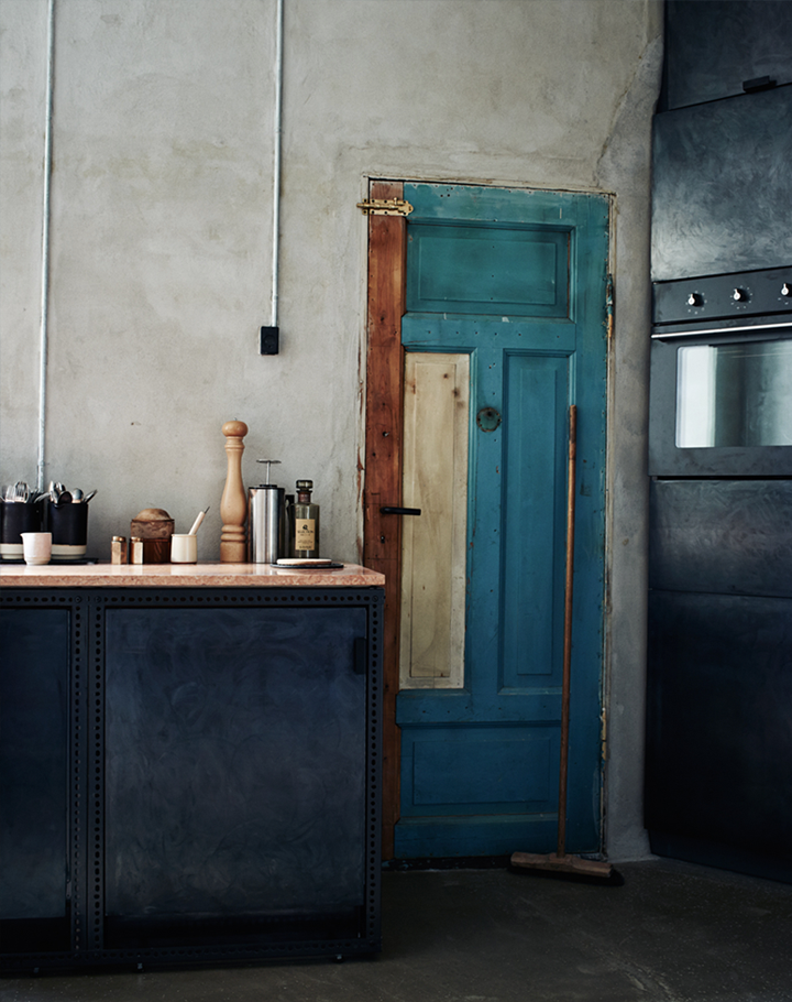 I feel that I have create a bit different post here in order to break the white, summer routine. OK yes, this apartment also has a lot of blue, but it is different type – dramatic and moody. I was keeping it in my super-secret folder because it is the apartment of Niels – the creative director of the Danish brand Frama. Besides the blue you can find there beautiful furniture, wood, metal, concrete, grey and so many different textures. The stunning pictures were taken by one of my favorite photographers Ditte Isager for Kinfolk magazine.