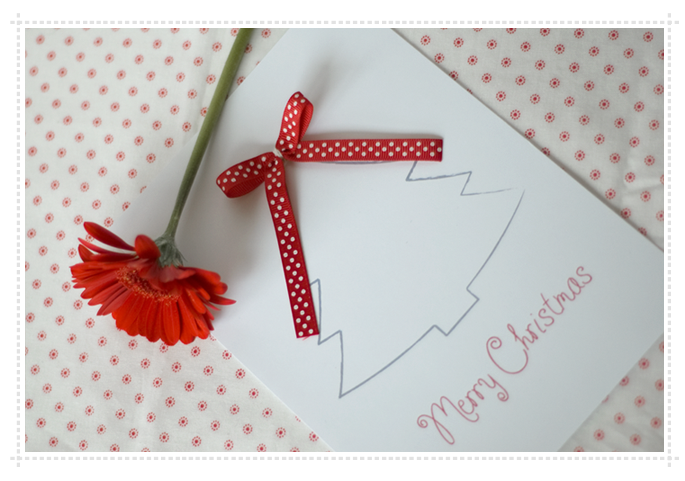 3. Select your ribbon, the best is red and glue it on top of the Christmas tree or on the gift box.