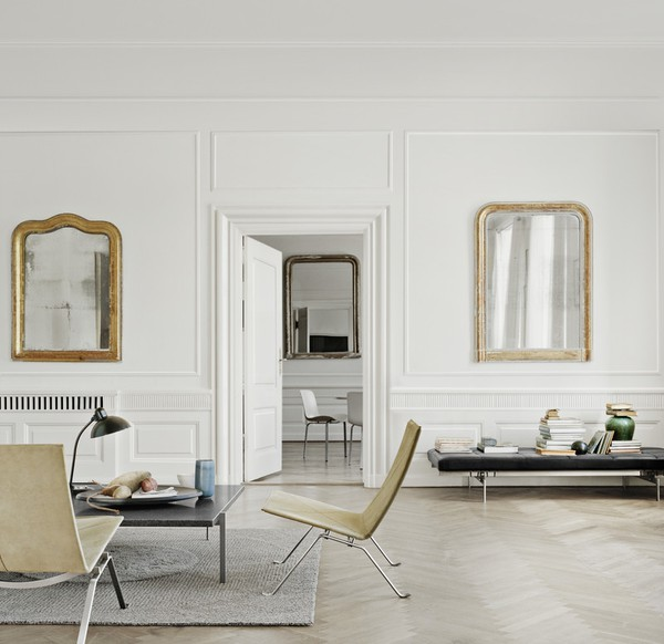 Are you curious to see how does Jacob Holm the head of “Fritz Hansen” lives? I guess yes, so let’s take a look at this lovely house in Denmark. I’m pretty sure you will be impressed by all those antiques and stunning big mirrors everywhere. And also pay attention to all the amazing chairs and lights. I have to admit that my favorite one is Poul Kjærholm 1960 with leather and stainless steel.