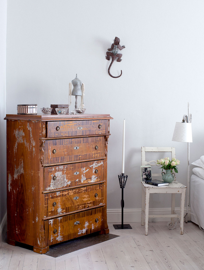 Красотата на този стокхолмски апартамент е уловена от изключителния фотограф Simon Bajada. Всички ние тук си падаме по скандинавския стил и усет, но тук специално не мога да не ви обърна внимание и на винтидж детайлите. Страхотния кожен диван, направо сияе във всекидневната, също както старият шкаф в спалнята.